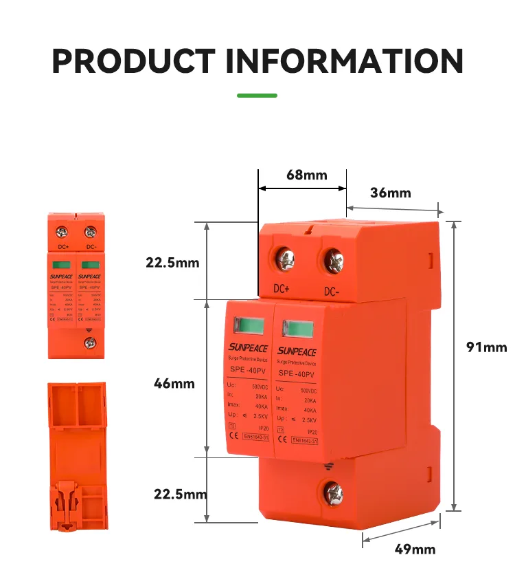 ✅ Robust Protection: Designed for DC solar systems, withstands up to 20kA surge current (8/20μs), safeguarding PV modules, inverters, and ESS.
