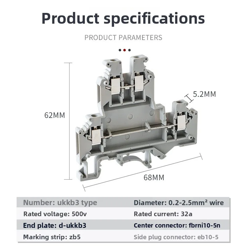 UKKB3 Din Rail Mounted Screw Terminal Block