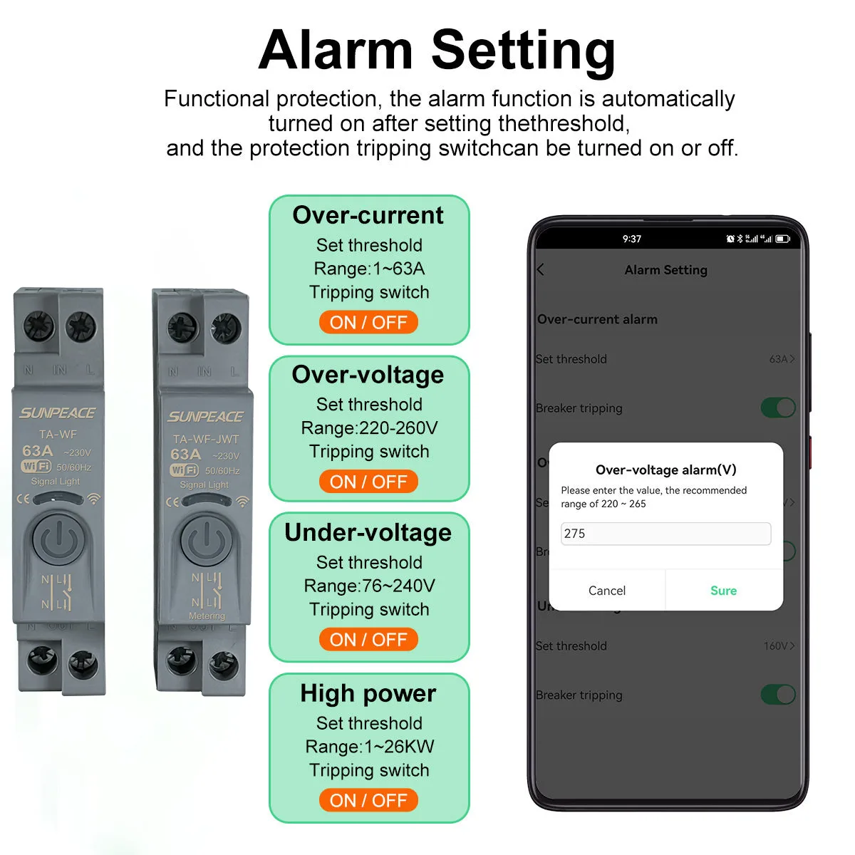 - 63A 80A 100A AC DC AVP Din Rail Three Phase Over Under Voltage Protector For Photovoltaic PV Solar System